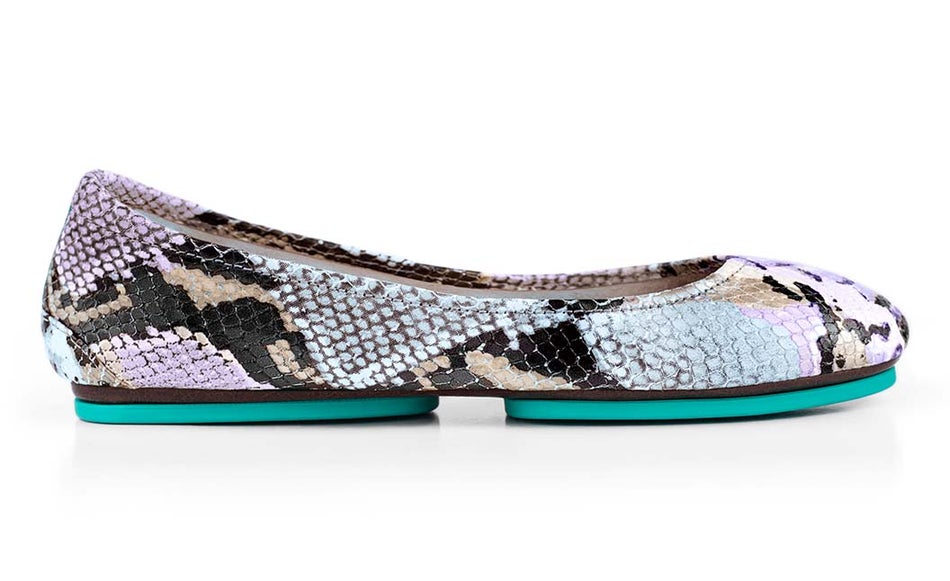 We’re wild for Lavender Snake Tieks. Masterfully painted by hand, no two pairs of this exquisite print are exactly alike. Each pair’s unique combination of lavender, black, gold, and pewter is destined to attract envious stares wherever you go.
