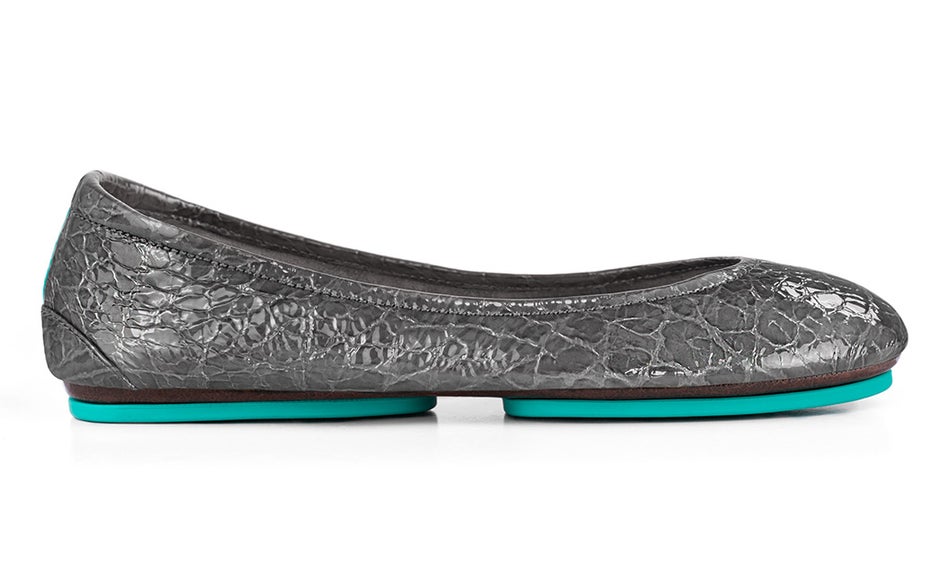 Shine in exquisite Slate Grey Croc Tieks. Their cool neutral hue makes them uniquely versatile for everyday looks, while their lustrous shine allows them to transition seamlessly from day to night.