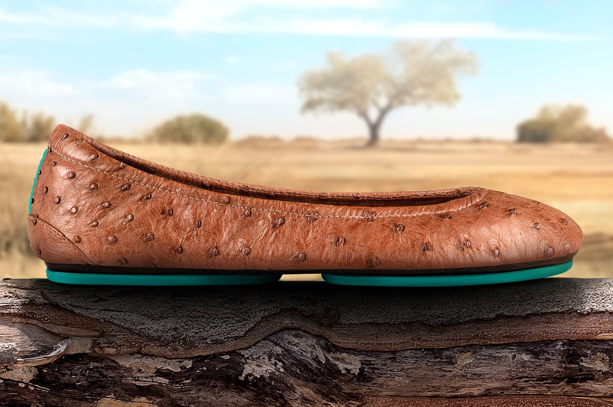 Crafted with luxe ostrich leather in a warm, light brown, this rare bird is spotted for the first time.