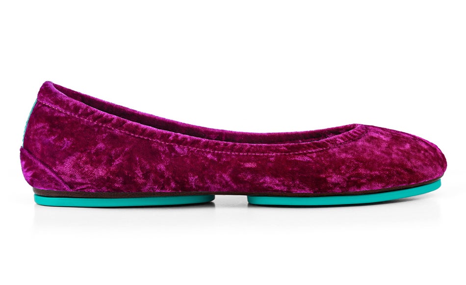 Inspired by the regal history of the ancient world’s most prized dye, Tyrian is our first-ever crushed velvet, crafted with a rich red-purple silk blend and supple leather insole. Velvet’s plush texture and lustrous sheen uniquely capture the vibrancy of Tyrian dye, which shines especially brightly in sunlight. Tyrian Tieks are fit to adorn royalty.