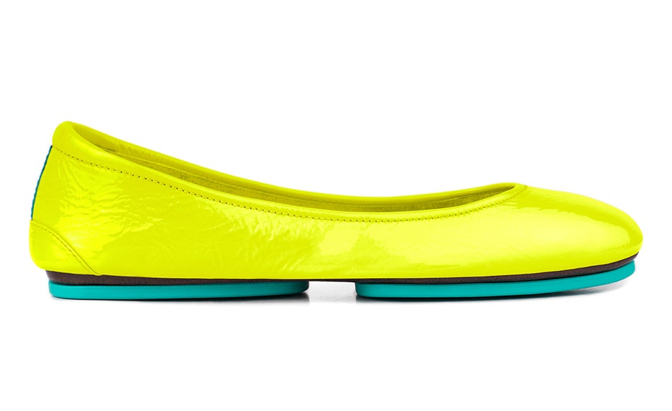 The Tieks Neon Collection features six show-stoppingly bright colors. All six styles are made from full-grain, Italian leather that is coated with a patent finish to give them a high gloss, shiny finish. Unmellow Yellow, Outrageous Orange, Galactic Green, Pop Pink, Ultraviolet, and Infrared are smooth patents.
