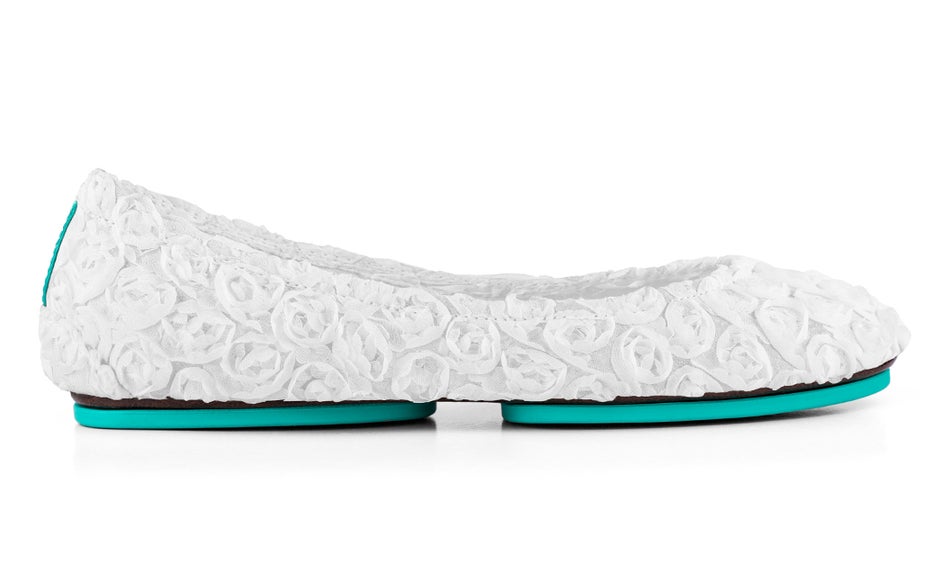 The Floral Collection, inspired by the world’s oldest rose garden, Le Rosearaie Du Val De Marne in L’Hay les Roses, in France, features Rose Garden and White Rose Tieks. Each pair is a true work of art consisting of dozens of hand-woven, fabric rosettes. The intricate floral accents are hand-stitched to lace overlay which adorns the Italian leather upper of each pair.